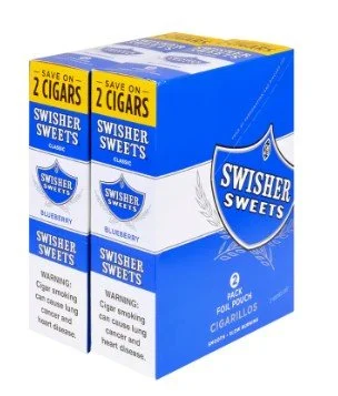 Product Catalog › Swisher Sweets - Save on 2 cigars - Blueberry Image 1 of 1 Swisher Sweets - Save on 2 cigars - Blueberry $0.00 This product is sold as a box and each box contains 15 packages of 2 cigars. Add To Cart Added! This product is sold as a box and each box contains 15 packages of 2 cigars. You Might Also Like 4K's - 4 pack cigarillos - Napa Grape 4k's - 4 pack cigarillos- Peach Backwoods Cigars - Banana 5pk 4k's - 4 pack cigarillos- Black Sweet 4k's - 4 pack cigarillos - Melonberry
